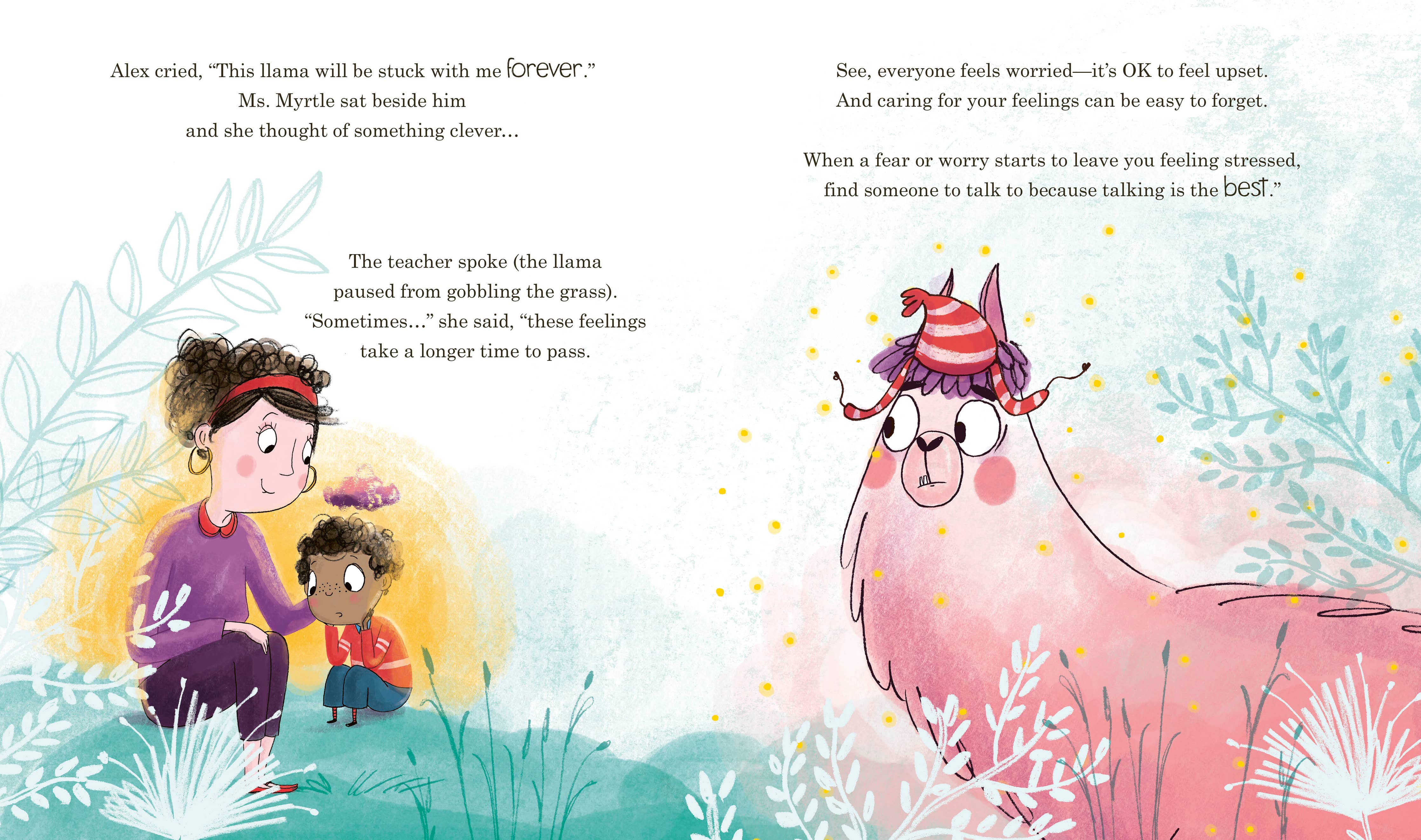 One day a WORRY comes to stay and simply will not go away! "Whenever he was worried or whenever there was drama, Alex Allen's brain produced . . . A living breathing Llama!" Alex Allen, like lots of children, sometimes worries about things—like dancing badly or getting an answer wrong in class. But unlike lots of children, every time he worries a real-life llama appears! And the more Alex worries, the bigger Llama grows... which starts getting him into all sorts of trouble! Will Alex ever learn how to control his worries and get rid of this pesky llama? This hilarious yet heartwarming rhyming tale from incredible new picture book talent Rachel Morrisroe and bestselling illustrator Ella Okstad offers practical advice about dealing with worry while taking you along on the wonderfully riotous adventures of Alex and his mischievous llama.